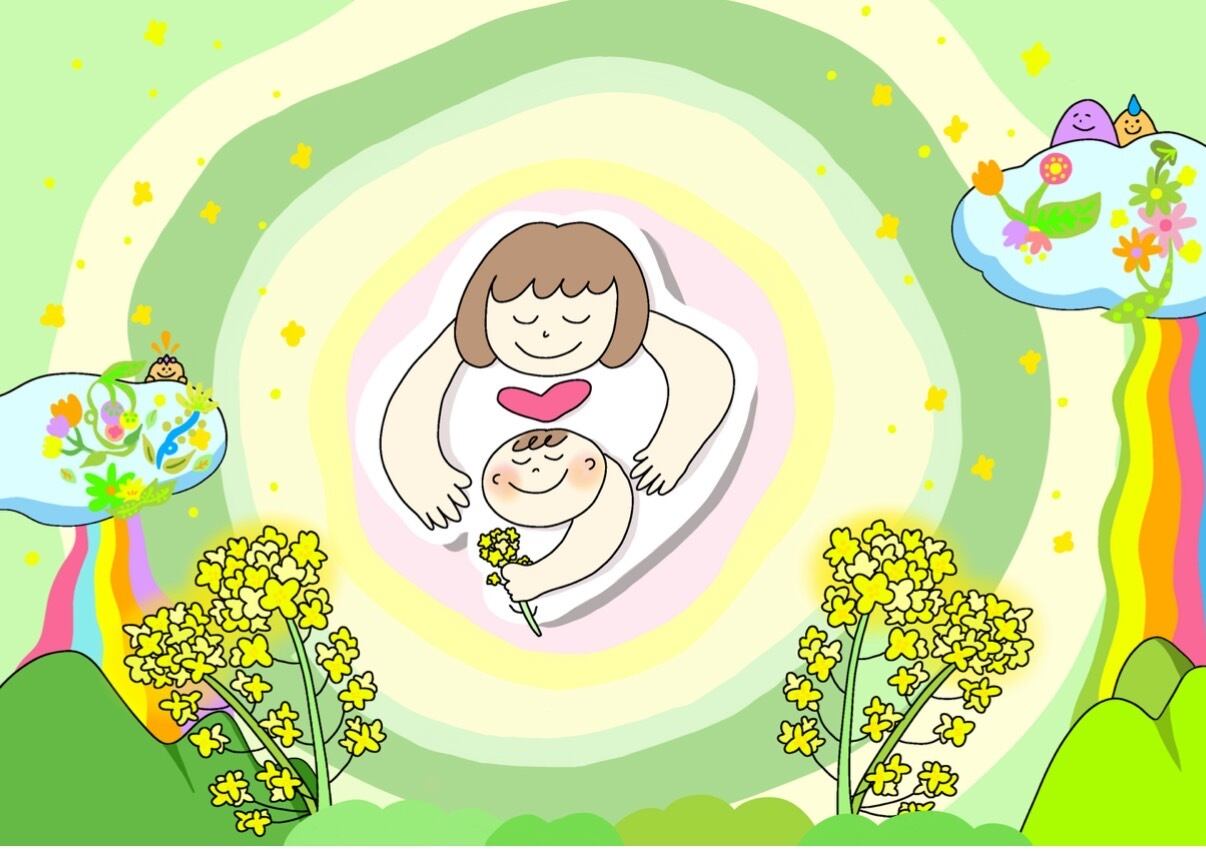 真ん中には、ママがそっと子どもを抱きしめる「今」の字。